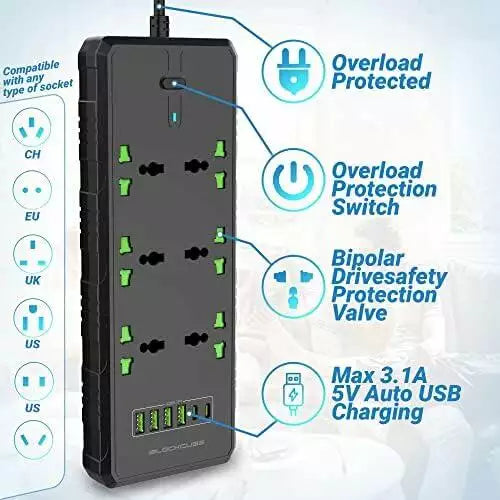 Step into the future of power extension with the T27 Universal Extension Lead, an embodiment of innovation and utility. Outfitted with 6 universal power supplies, 4 USB ports, and 2 PD, this device offers a seamless solution to power and charge your tech essentials simultaneously. From mobile devices to home appliances, the T27’s carefully considered design, safety features, and aesthetic appeal make it a must-have for every modern home and workspace.
