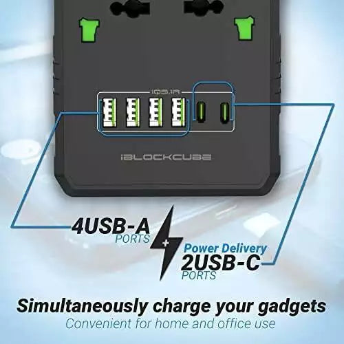- 6 universal power supplies combined with 4 USB and 2 PD ports for diverse charging needs.